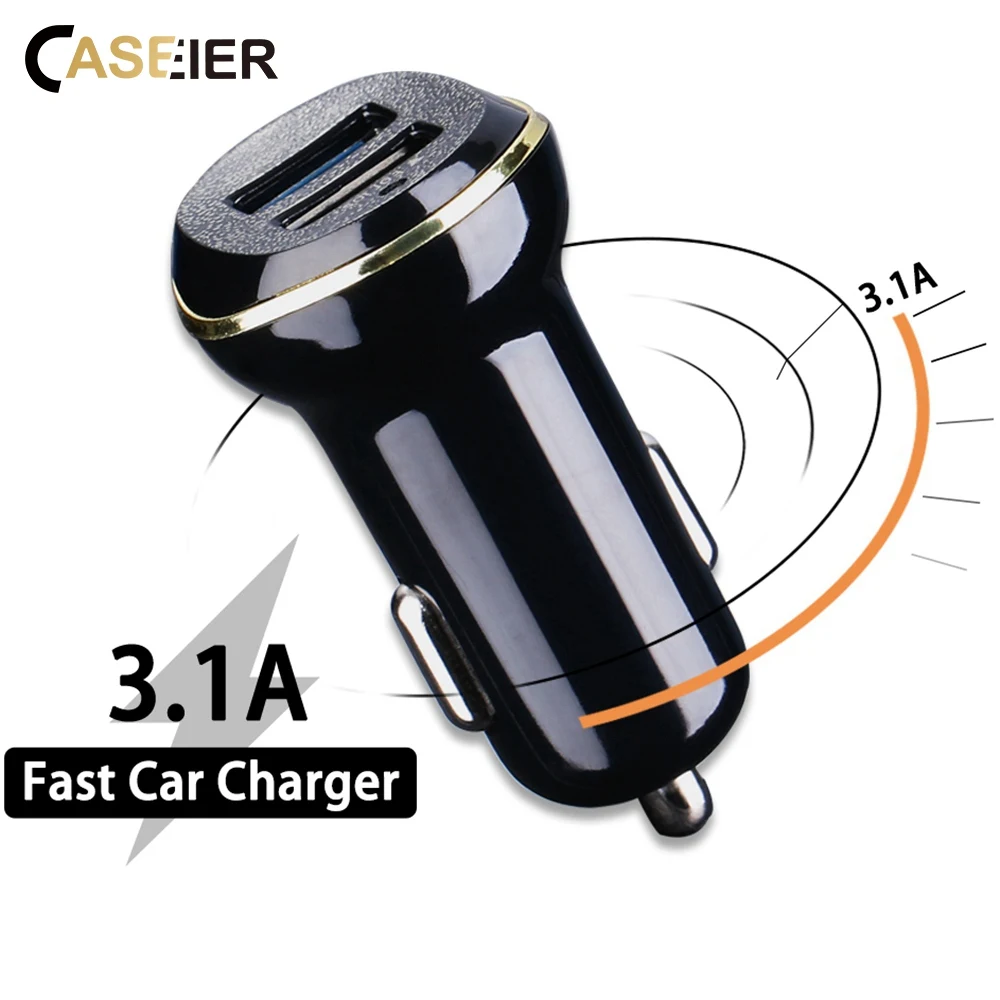 .Images of CASEIER 3.1A Fast Dual USB Car Charger For iPhone XR X XS Max USB Charging For Samsung Xiaomi Mobile Phone Car Charger Adapter